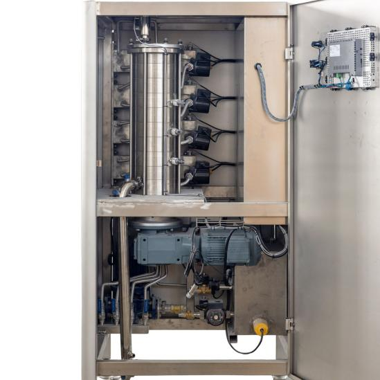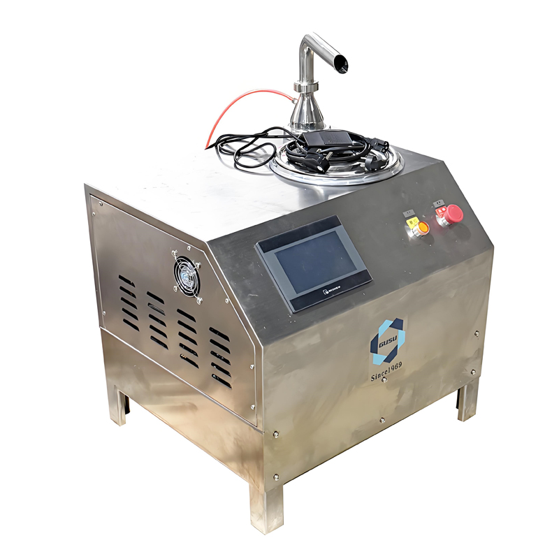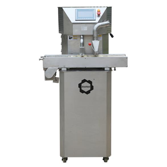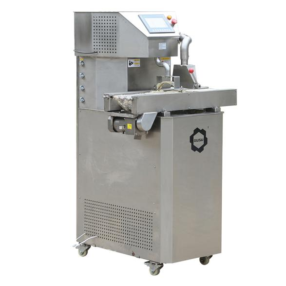 esto model is the Gusu Machinery QT series chocolate tempering machine, designed based on the characteristics of natural cocoa butter. It features a vertical structure; chocolate raw materials are fed in from the bottom via a chocolate pump, then pass through four temperature-regulating zones and one constant-temperature zone before exiting from the top. This series of processes results in chocolate products with excellent crystallization, a smooth texture, outstanding shaping properties, and a longer shelf life.