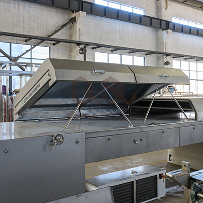 Los túneles de enfriamiento son adecuados para enfriar diversos bocadillos durante el moldeo, como dulces y productos de chocolate. Se pueden configurar tras una bañadora de chocolate. Después de que el producto se recubre con suspensión de chocolate, se transporta mediante una cinta transportadora al túnel de enfriamiento para enfriarlo, permitiendo que la suspensión de chocolate se solidifique en la superficie del producto. El túnel de enfriamiento se puede adaptar a la salida de la bañadora de chocolate anterior. La máquina tiene una estructura compacta y un funcionamiento estable.